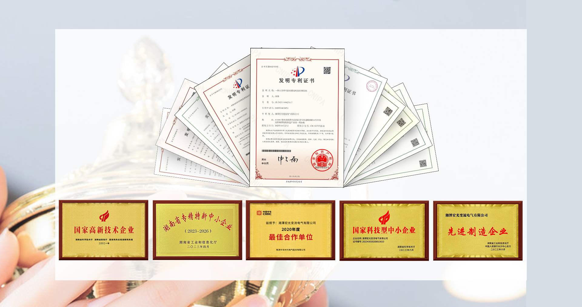 技術(shù)為企業(yè)的第一生命力,公司秉承“專(zhuān)業(yè)、誠(chéng)信、發(fā)展、卓越”的經(jīng)營(yíng)理念,始終重視研發(fā)投入和技術(shù)創(chuàng)新。公司先后被評(píng)為國(guó)家級(jí)高新技術(shù)企業(yè)和湖南省專(zhuān)精特新小巨人企業(yè),現(xiàn)有各項(xiàng)專(zhuān)利20多項(xiàng),其中發(fā)明專(zhuān)利4項(xiàng),公司自主研發(fā)的“ZHS-460KA大功率整流器”榮獲湖南省首臺(tái)套科技獎(jiǎng)和省級(jí)自然科學(xué)基金獎(jiǎng)。